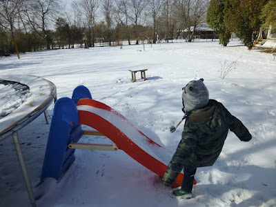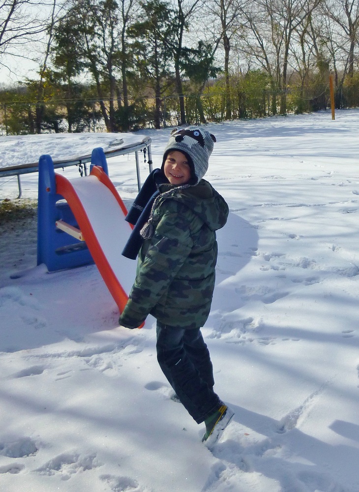 It snowed all afternoon and evening and it took us about 3.5 hours to drive back home (instead of 2)! The next morning we got to play in it :)